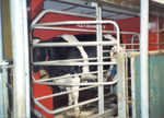 kor som mjölkats genom en speparationsgrind ut på bete, övriga